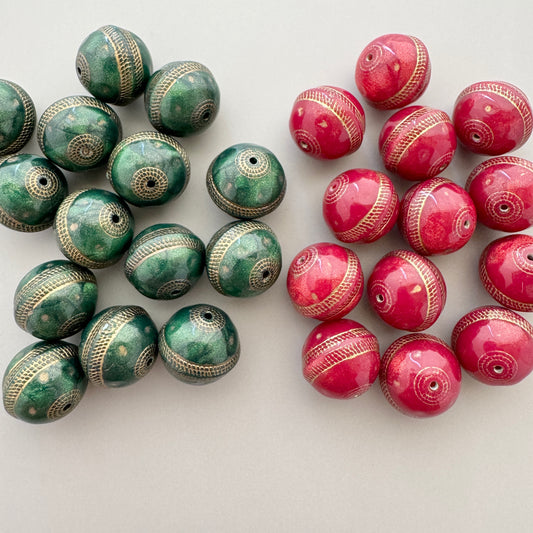 Plastic Beads Gold Tapestry Round LODEN GREEN 16mm【2pcs】