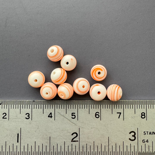 Japan Vintage Lampwork Glass Beads White/Orange Marble 7mm【10pcs / 1 strand】