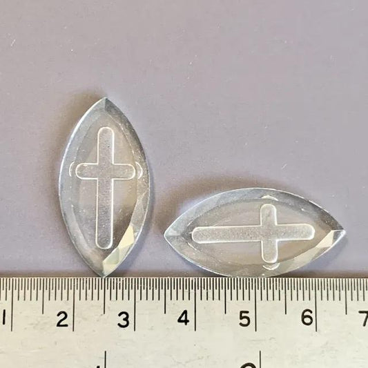 Czech Vintage Glass Intaglio Cross Crystal 30×15mm
