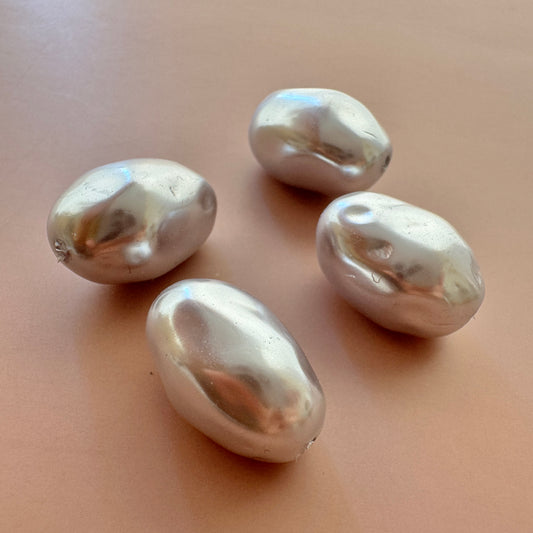 Japan Deadstock Plastic Beads Silver Pearl 18x22mm【2 pcs】