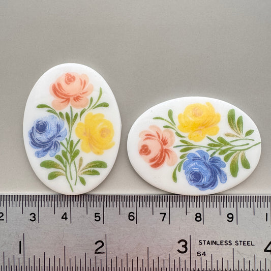 German Vintage Glass Decal Cabochon Brown/Purple Flowers Oval 30x22mm